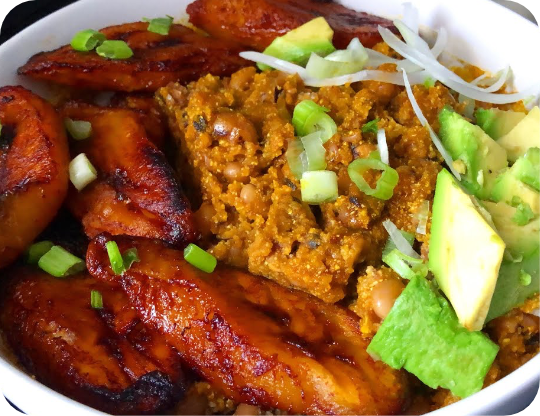 Beans sauce with fried plantain