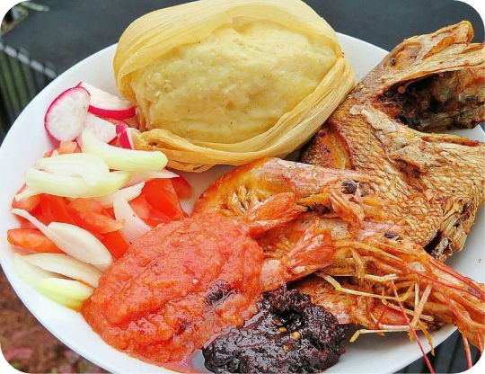 Kenkey with Red Snapper Fish & Shrimps