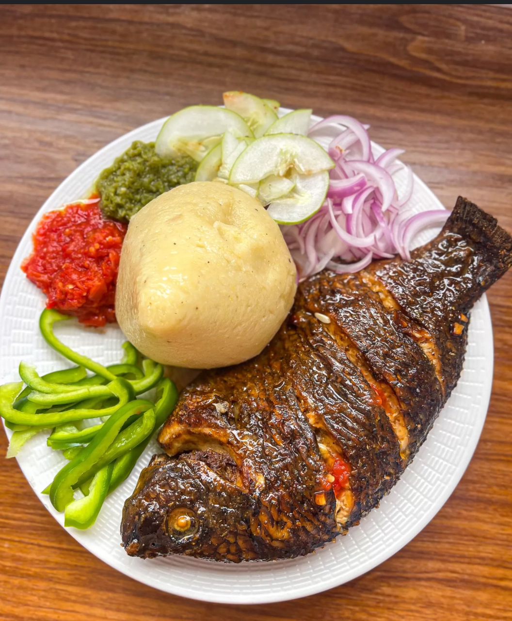 Banku with grilled tilapia fish
