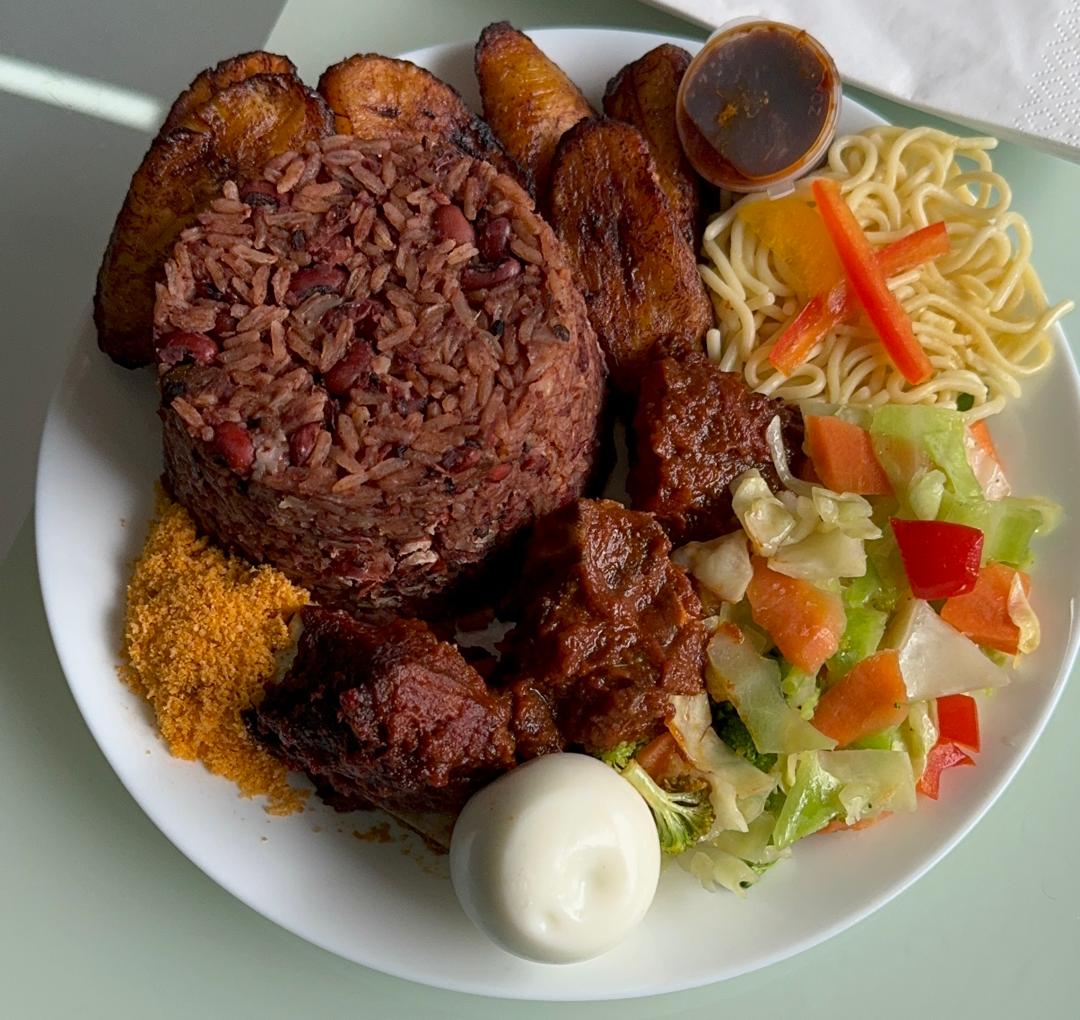 Rice and Beans with assorted accompaniments